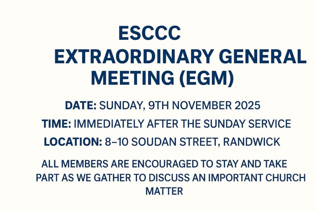 Email admin@esccc.org.au to be added to the church’s email list to be notified of various things happening around the church.